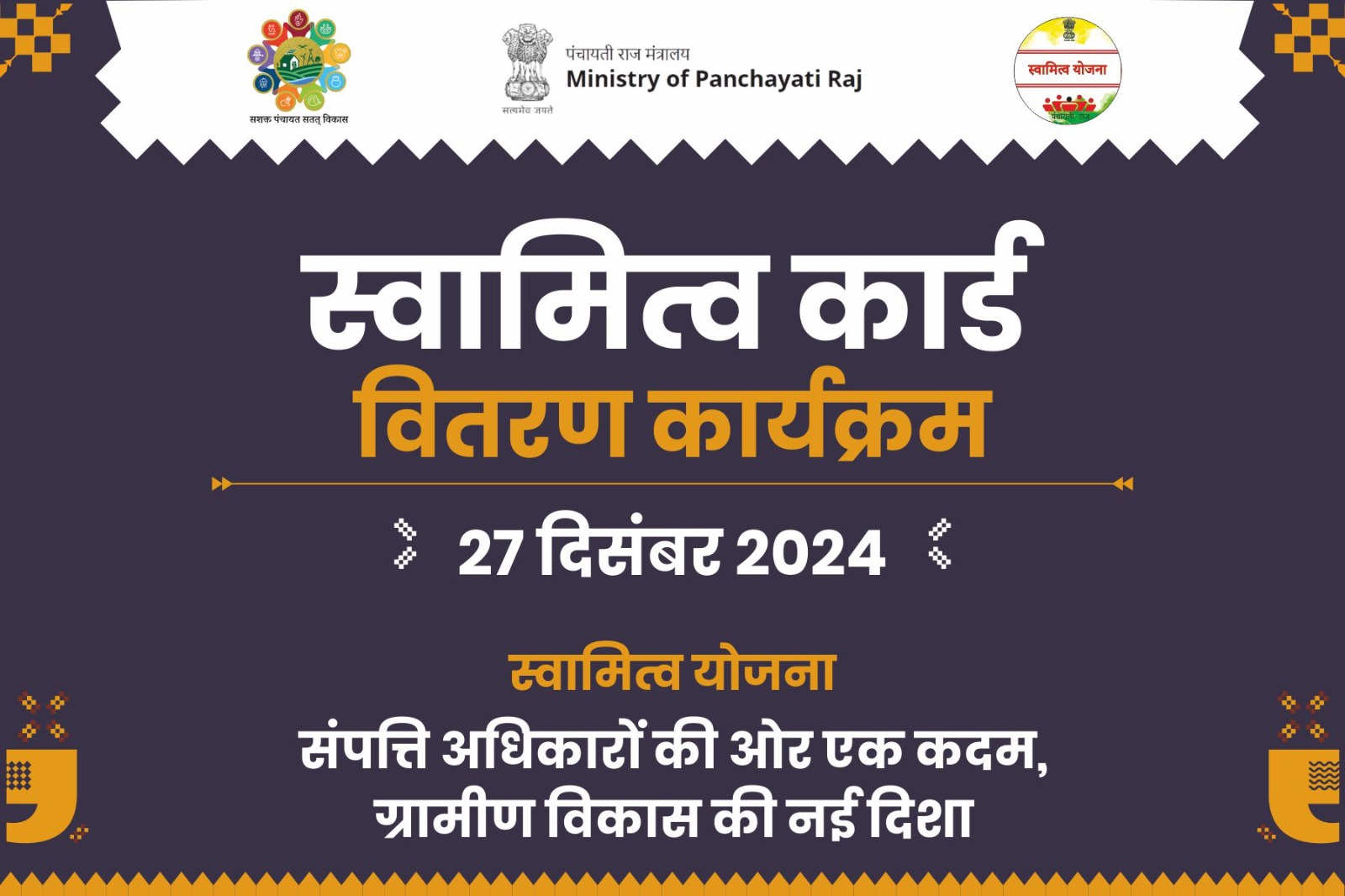 अपर कलेक्टर बीरेन्द्र लकड़ा से प्राप्त जानकारी के अनुसार 27 दिसंबर 2024 को स्वामित्य योजना के तहत पापर्टी कार्ड का वितरण किया जा रहा हैं। तहसील सक्ती में 395 प्रापर्टी कार्ड, तहसील नया बाराद्वार में 217 प्रापर्टी कार्ड, तहसील भोथिया में 73 प्रापर्टी कार्ड, तहसील मालखरौदा में 372 प्रापर्टी कार्ड, तहसील अड़भार में 211 प्रापर्टी कार्ड, तहसील डभरा में 334 प्रापर्टी कार्ड, तहसील चन्द्रपुर में 718 प्रापर्टी कार्ड बांटा जाएगा। जिले के 26 ग्राम पंचायतों के 36 ग्रामों में प्रापर्टी कार्ड वितरण हेतु पंचायत स्तर पर पटवारियों को नोडल अधिकारी एवं ग्राम पंचायत सचिवों को सहायक नोडल अधिकारी नियुक्त किया गया है। विकासखंड स्तर पर तहसीलदार एवं मुख्य कार्यपालन अधिकारी जनपद पंचायत को सहायक नोडल अधिकारी एवं अनुविभागीय अधिकारी (राजस्व) को नोडल अधिकारी नियुक्त किया गया है। इसी प्रकार जिला स्तर पर अपर कलेक्टर श्री के.एस.पैकरा को जिला स्तरीय नोडल अधिकारी नियुक्त किया गया है। उल्लेखनीय हैं कि स्वामित्व योजना भारत सरकार द्वारा शुरू की गई योजना है जिसका उद्देश्य ग्रामीण भारत के निवासियों को उनकी भूमि और संपत्ति पर मालिकाना अधिकार प्रदान करना है। स्वामित्व योजना अंतर्गत प्रापर्टी कार्ड (अधिकार अभिलेख) जारी किये जाते हैं, जो ग्रामीण भूमिधारक के संपत्ति के स्वामित्व को प्रमाणित करते है।