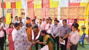 संचालनालाय आयुष रायपुर छ ग के आदेशनुसार जिला आयुष अधिकारी डॉ गौराहा के मार्गदर्शन में जिलास्तरीय आयुष स्वास्थ्य मेला का आयोजन गढउमरिया में किया गया। प्रातः 10 बजे भगवान धनवंतरी की विधिवत पूजा अर्चना कर पुसौर जनपद अध्यक्ष श्रीमती हेमलता चौहान,डी डी सी श्रीमती भगवती डोलनारायण नायक, सरपंच नित्यानंद यादव, गणमान्य नागरिक दुलार साहू ने मेला का शुभ आरंभ किये।आयुर्वेद जन-जन के लिए, पृथ्वी के कल्याण के लिए की थीम पर इस वर्ष शिविर का आयोजन किया गया। इसी लिए यह शिविर पहली बार जिला मुख्यालय से बाहर माननीय वित्त मंत्री श्री ओ पी चौधरी जी के विधान सभा क्षेत्र के सबसे बड़े गांव गढ़ उमरिया में आयोजित किया गया। शिविर प्रभारी डॉ नीरज मिश्रा ने आयुर्वेद की वैज्ञानिकता एवं उपयोगिता पर प्रकाश डाला। शिविर् का उद्देश्य लोगों को स्वास्थ्य सुविधा देना एवं स्वस्थ जीवन जीने के लिए प्रेरित करना।आयुर्वेद चिकित्सा पद्धति बहुत ही प्राचीन है। जिसका कोई साइड इफेक्ट्स नहीं होते हैं एवं रोग जड़ से समाप्त होते हैं। शासन आयुर्वेद पद्धति अपनाने के लिए कई प्रकार की योजना चला रही है जिसे आयुष विभाग आम जनता तक पहुँचाने में लगे हैं।जिले में पंच कर्म द्वारा लोगों का इलाज की प्रचलन दिनों दिन बढ़ती जा रही है। शिविर में 855 रोगियों को उपचार कर निशुल्क औषधि वितरण किया। जिसमें आयुर्वेद पद्धति से740 एवं होमियोपैथि पद्धति से 115 रोगियों का उपचार हुआ। 175 लोगों का रक्त परीक्षण किया गया।शिविर स्थल पर सभी लोगों को रोग प्रतिरोधक गुडचयदि काढा पिलाया गया।नेत्र परीक्षण,आयुष्मान कार्ड बनाने की भी व्यवस्था रखी गई। शिविर स्थल पर विभिन्न आयुर्वेदिक विषयों पर आधारित पाम्पलेट जैसे-उच्च रक्तचाप, मधुमेह, वातरोग, ऋतुचर्या, योगाभ्यास आदि का वितरण किया गया एवं प्रदर्शनी के माध्यम से आमजन को जागरूक किया गया।शिविर में मुख्यतः डॉ.कुणाल पटेल, डॉ.अजय नायक, डॉ.प्रियंका नायक,