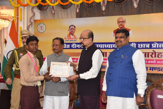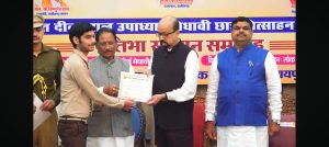 इन दोनों होनहार विद्यार्थियों को रायपुर के लोक भवन में आयोजित “पंडित दीनदयाल उपाध्याय मेधावी छात्र प्रोत्साहन योजना” के अंतर्गत हुए मेघावी छात्र सम्मान समारोह में सम्मानित किया गया। इस गरिमामय अवसर पर छत्तीसगढ़ के मुख्यमंत्री विष्णुदेव साय एवं राज्यपाल रमेन डेका के करकमलों से प्रवीण प्रजापति एवं शुभम देवांगन को प्रशस्ति पत्र एवं स्मृति चिन्ह प्रदान कर सम्मानित किया गया तथा उनके उज्ज्वल भविष्य की कामना की गई।