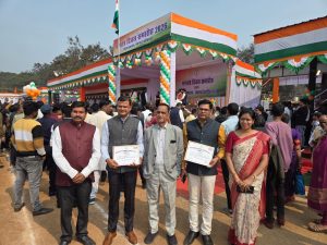 रायगढ़ के जिला आयुष अधिकारी डॉ गौराहा की अनुशंसा पर विभाग में उत्कृष्ट कार्य के लिए आयुर्वेद अधिकारी संघ के महामंत्री डॉ अजय नायक एवं जिला अध्यक्ष डॉ कुणाल पटेल को प्रशस्ति पत्र द्वारा सम्मानित किया गया। यह सम्मान गणतंत्र दिवस समारोह में मंत्री श्री रामविचर नेताम एवं कलेक्टर श्री मयंक चतुर्वेदी से प्राप्त हुआ। डॉ नायक शासकीय आयुर्वेद औषधालय बुनगा में पदस्थ है। जिन्होंने लगातार शिविरएवं अन्य गतिविधि के माध्यम से क्षेत्र की जनता को आयुर्वेद के प्रति जागरूक कर रहे हैं। वही डॉ कुणाल पटेलपाली में पदस्थ हैं जो कि विगत 15 वर्षो से कार्य कर रहे हैं। दोनों डॉ आयुर्वेद चिकित्सा में हमेशा समर्पित होकर विभाग का नाम रोशन कर रहे हैं। जिला अधिकारी डॉ गौराहा सहित सभी साथी चिकित्सा अधिकारीयो ने बधाई एवं शुभकामना दिये।